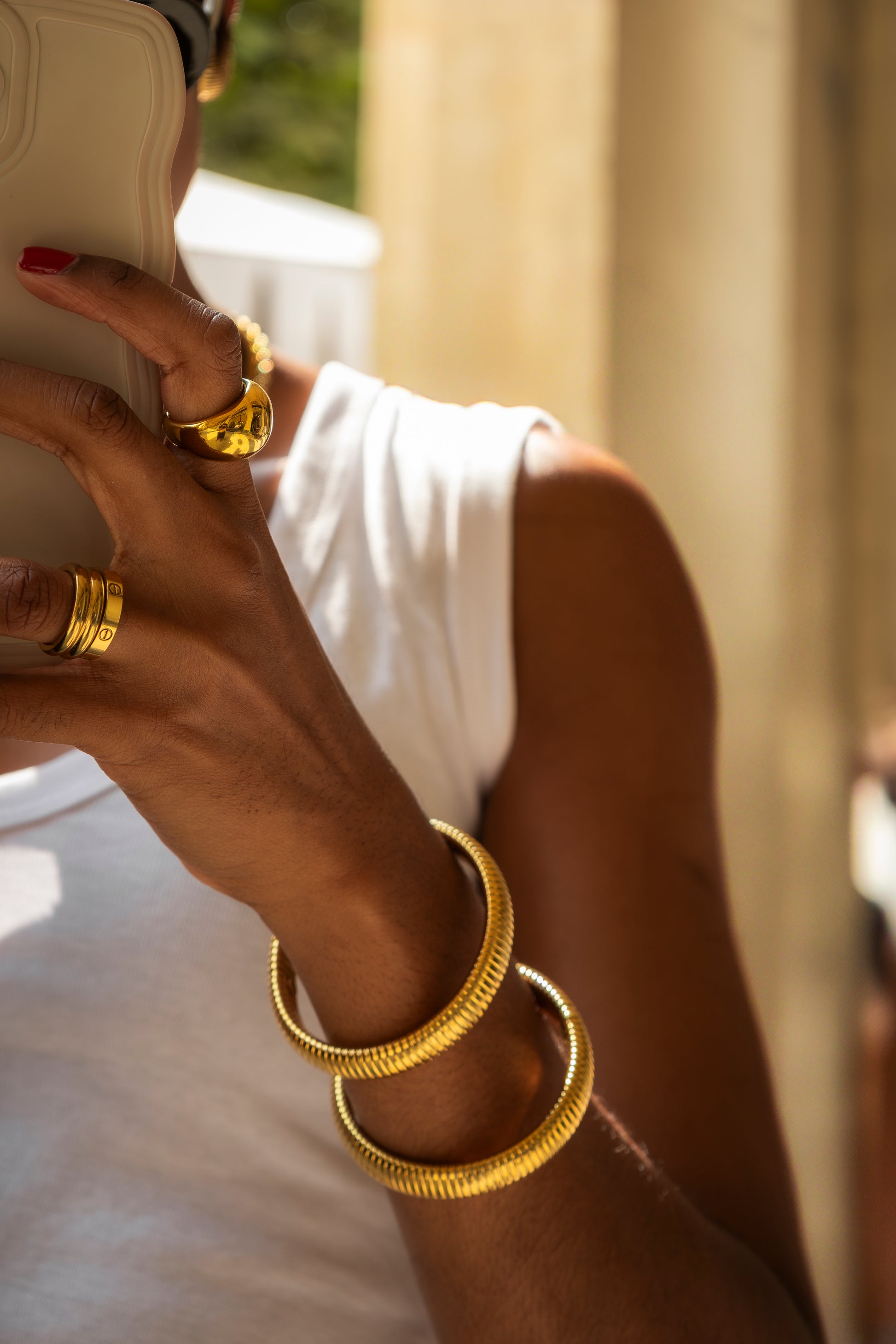 316L stainless steel • 18K plating Hypoallergenic (nickel-safe) and waterproof.