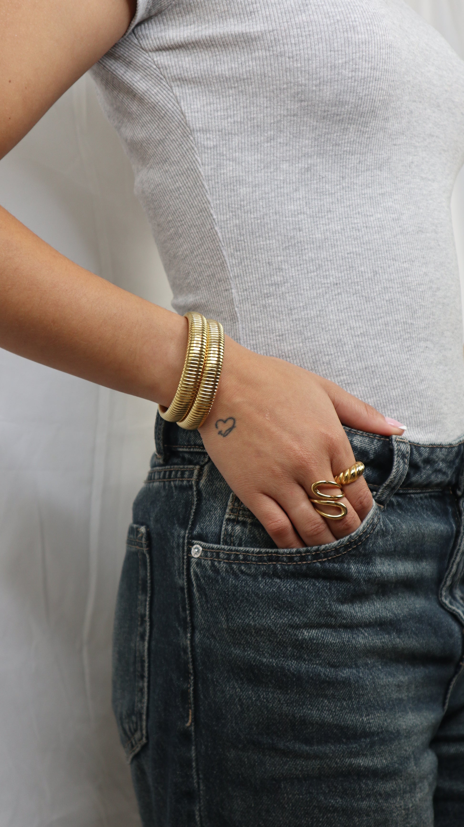 316L stainless steel • 18K plating Hypoallergenic (nickel-safe) and waterproof.