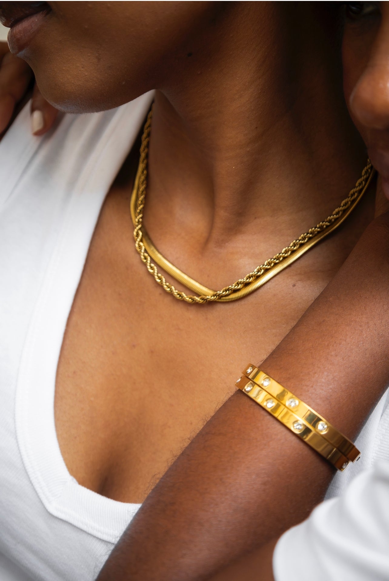 316L stainless steel • 18K plating Hypoallergenic (nickel-safe) and waterproof.