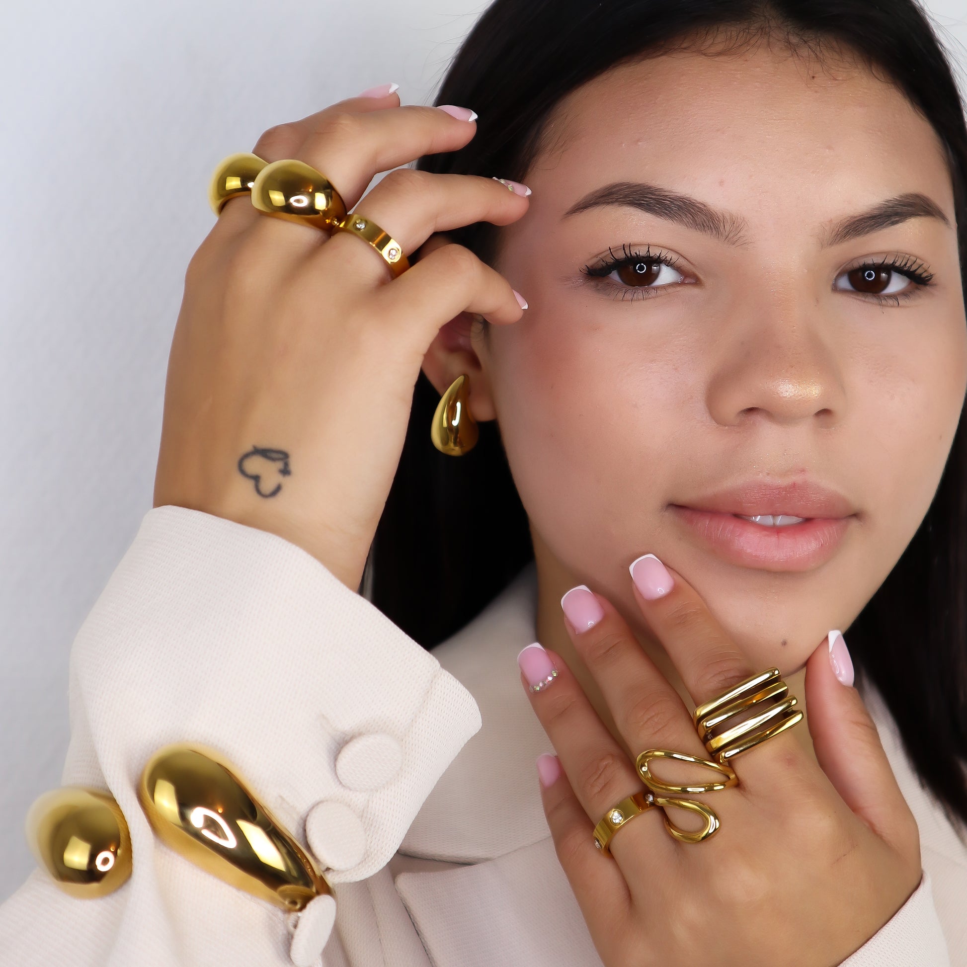 316L stainless steel • 18K plating Hypoallergenic (nickel-safe) and waterproof.