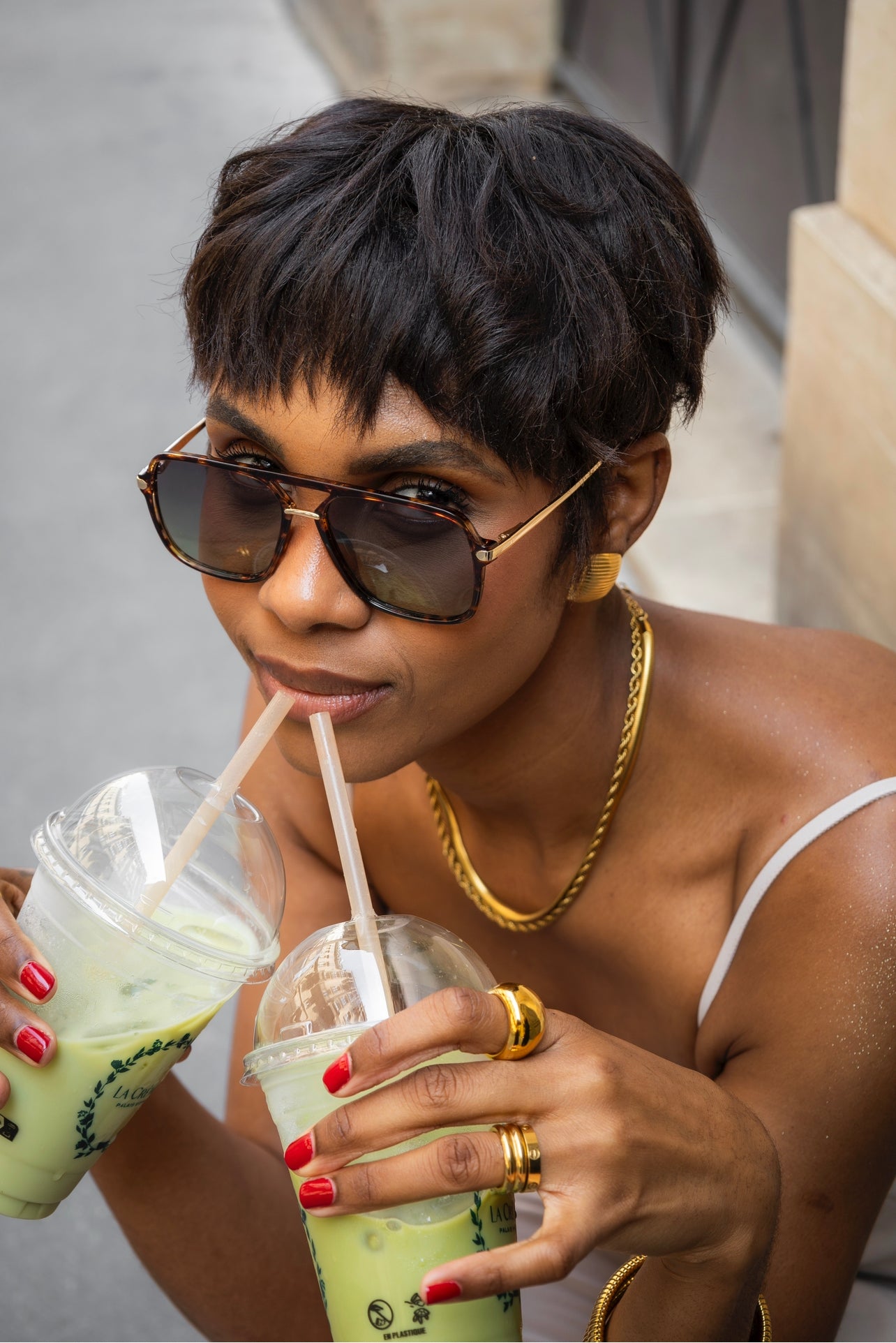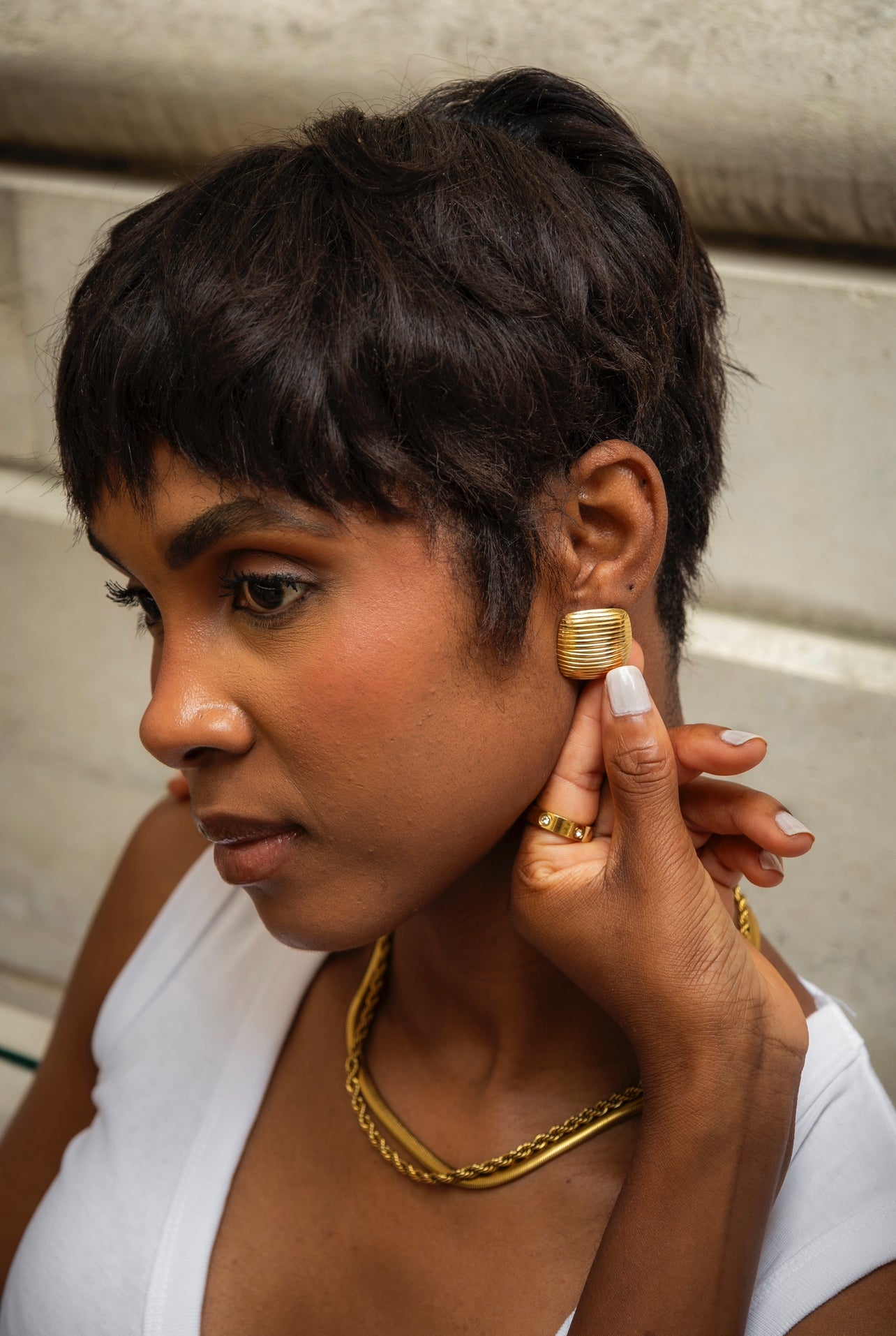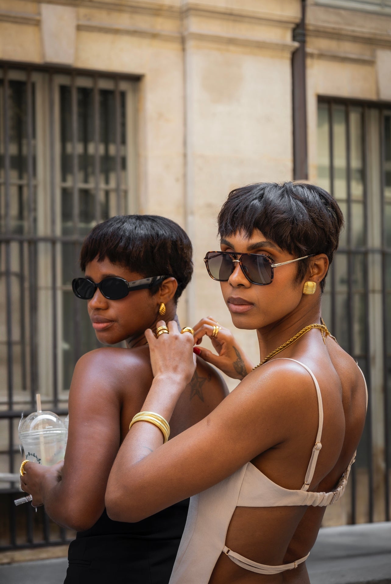 316L stainless steel • 18K plating Hypoallergenic (nickel-safe) and waterproof.